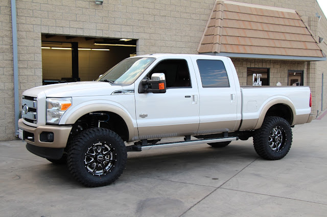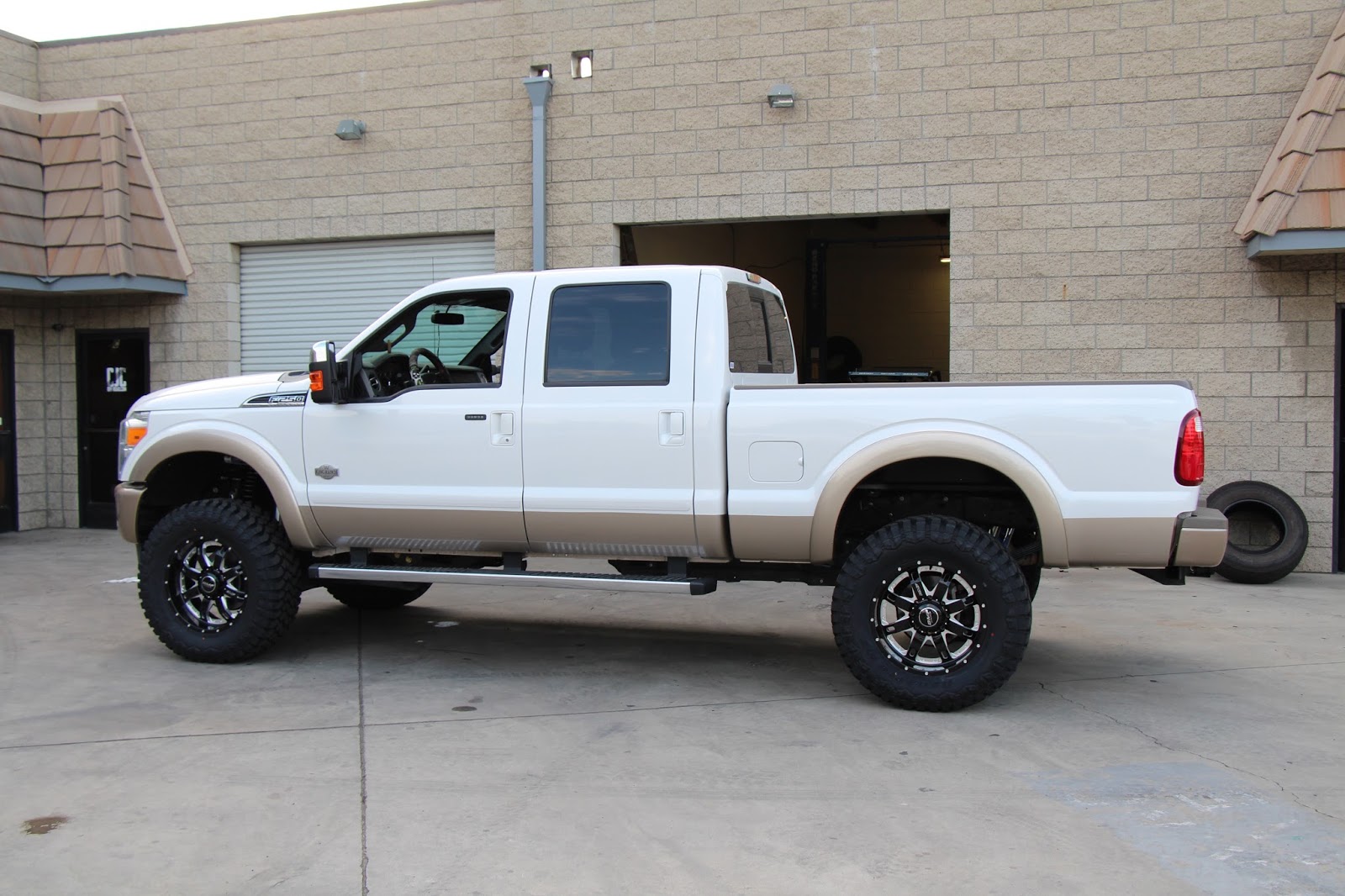 This 2012 King Ranch Super Duty came in bone stock and left with a Carli Suspension Pintop 2.5 4.5" Lift System, Carli Suspension Full Progressive Leaf Springs, Carli Suspension High Mount Steering Stabilizer, BMF wheels, and Hankook 37x13.5x20 tires. The ride quality difference was night and day!