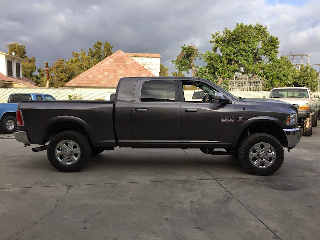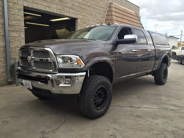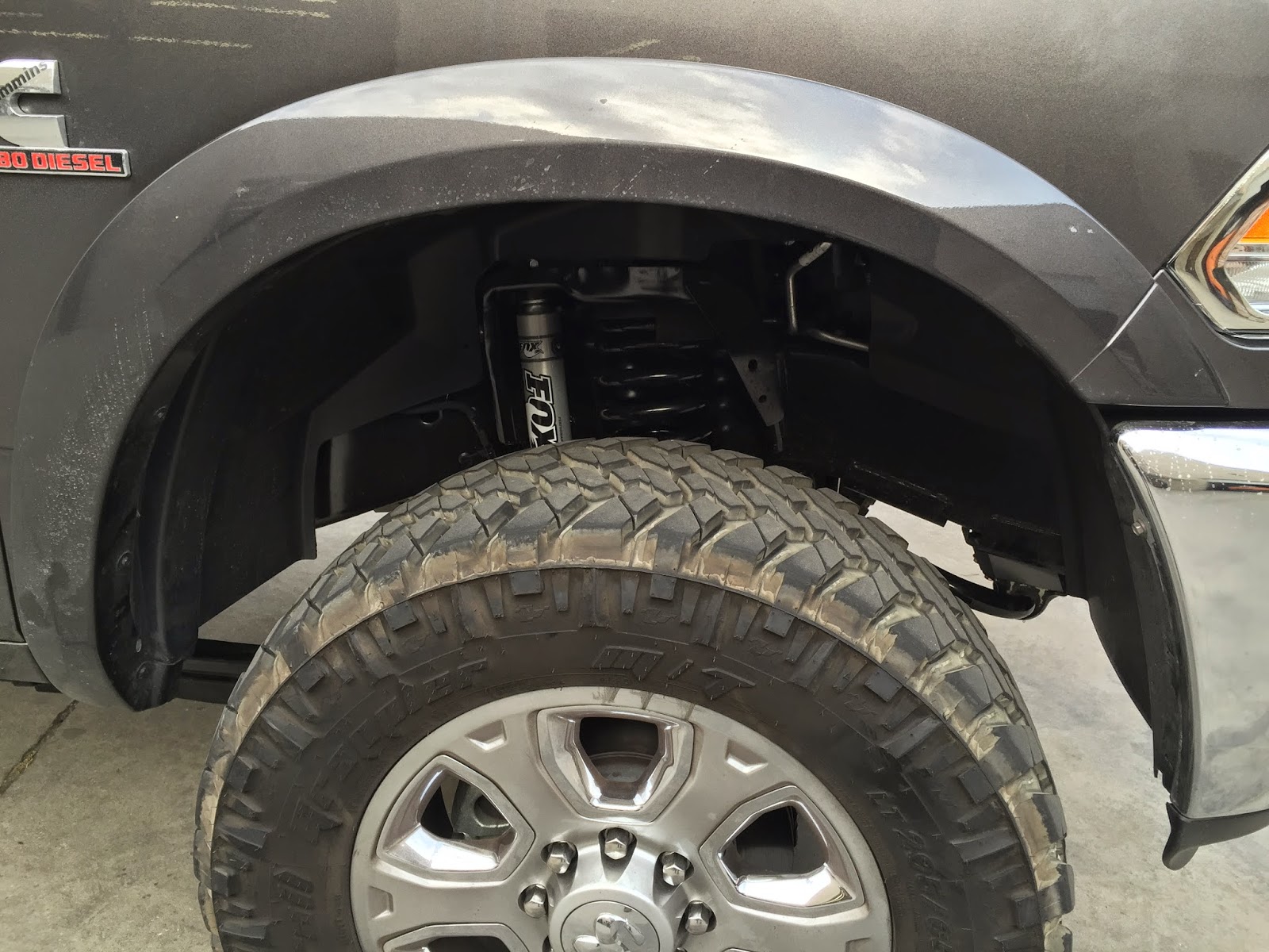 First - How NOT to level the front of these trucks. Due to how the coil springs seat on the front of the new radius arm equipped Dodges, any sort of lift without dropping the radius arms can rest in a variety of negative effects. Here is the front of a 2015 we saw this week: