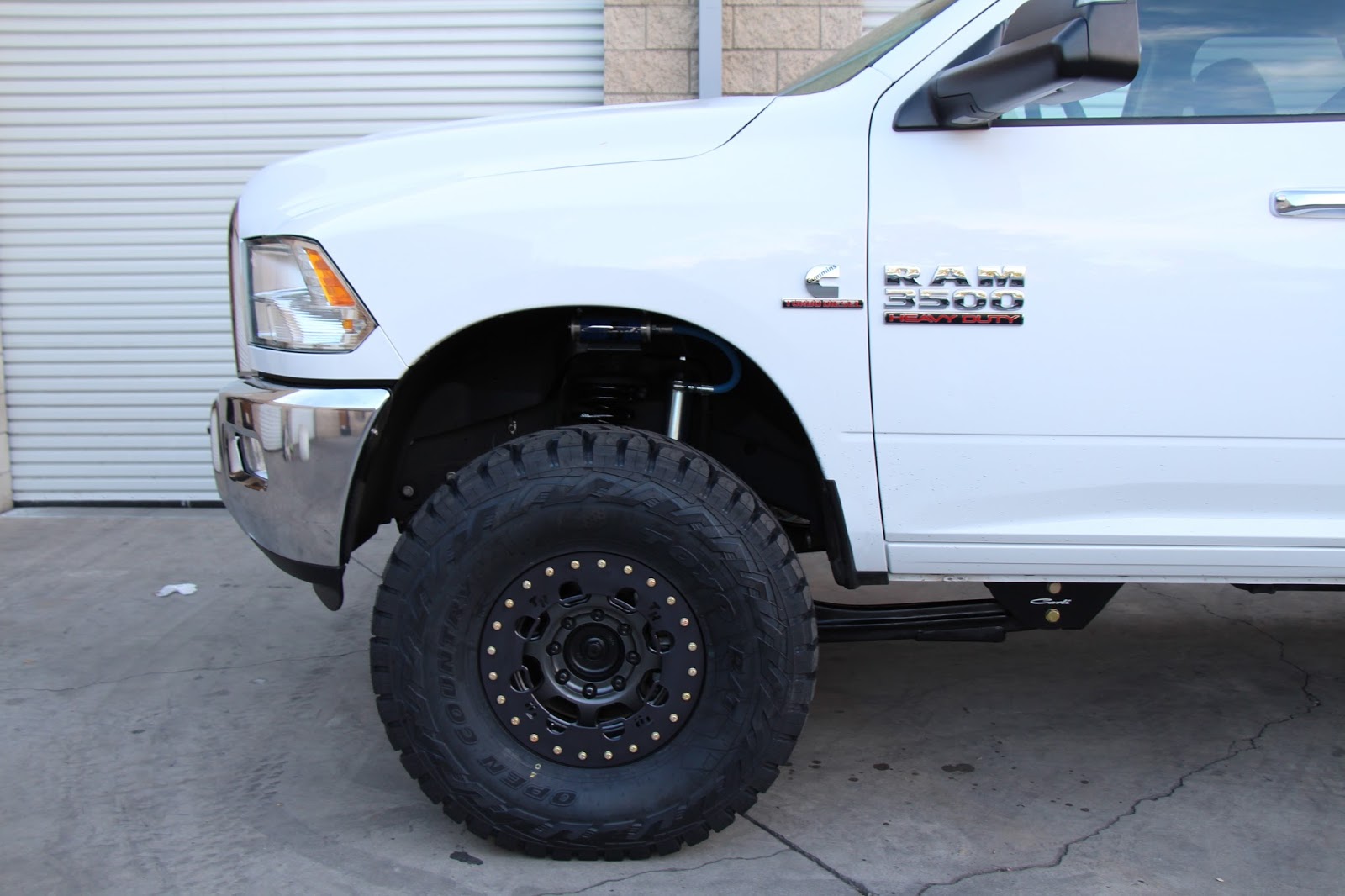 Here is a build we just finished on a Ram 3500 Mega featuring the 2013+ Ram 3500 Carli Pintop 2.5 system, a Carli Torsion Sway Bar, Trail Ready 17" Simulated Beadlock Wheels (5.5" backspacing), and 37x12.5x17 Toyo Open Country R/T tires: