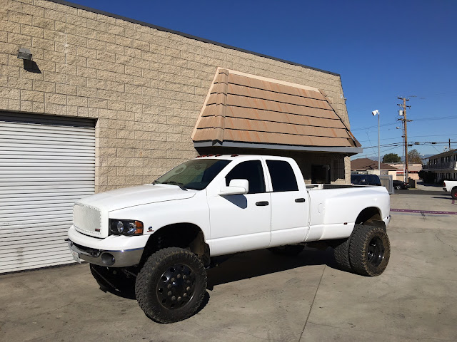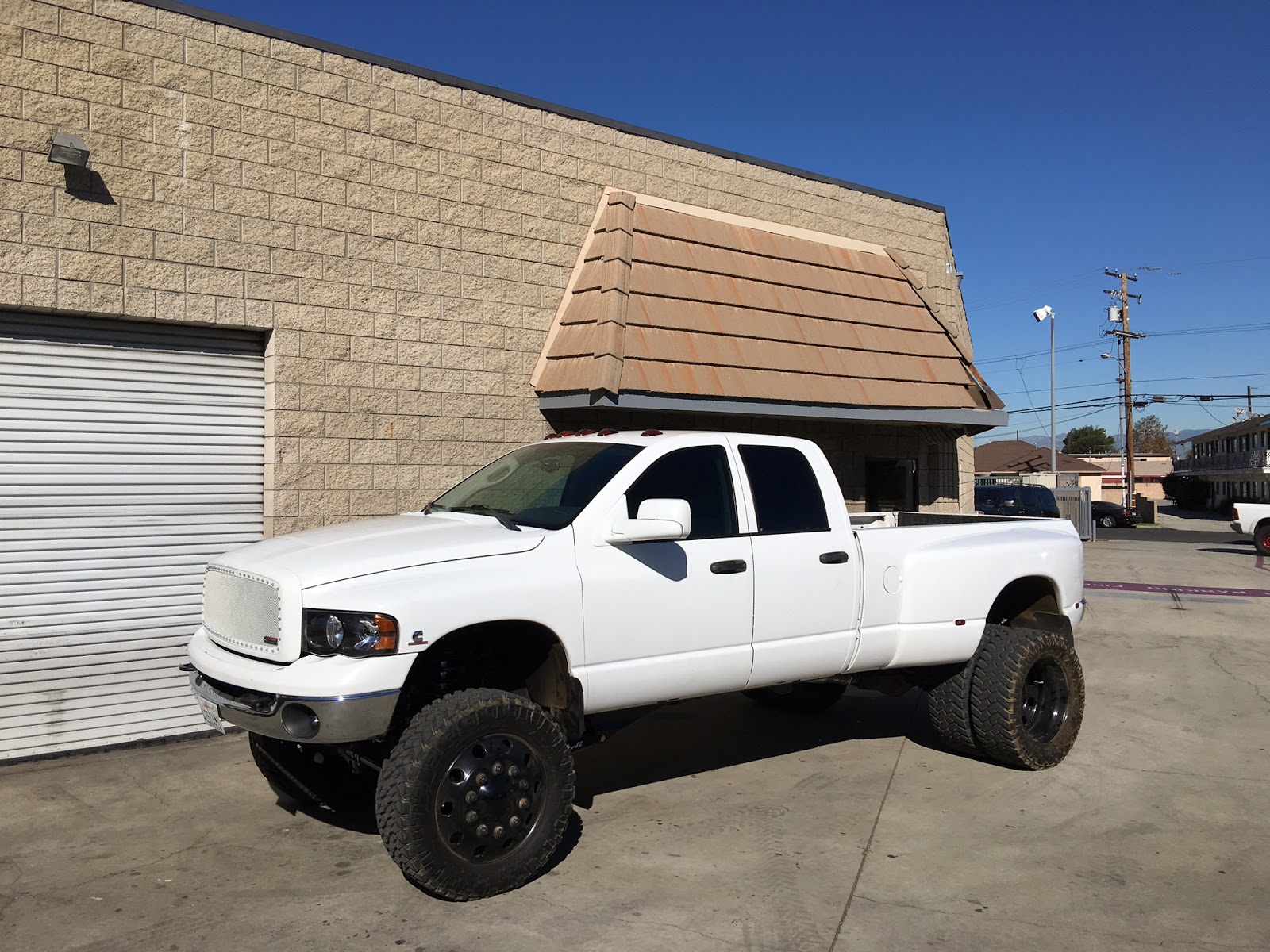 This 2004 dually features a Carli Suspension 6" Pintop 2.5 system with Carli Suspension Full Progressive Leaf Springs, Carli Long Travel Air Bags, 37" Nitto Trail Grappler MT tires, and Synergy Manufacturing Heavy Duty Steering. This truck is purpose built to be able to tow back and forth to sand dunes and be run hard while there. This setup should more than fit the bill!