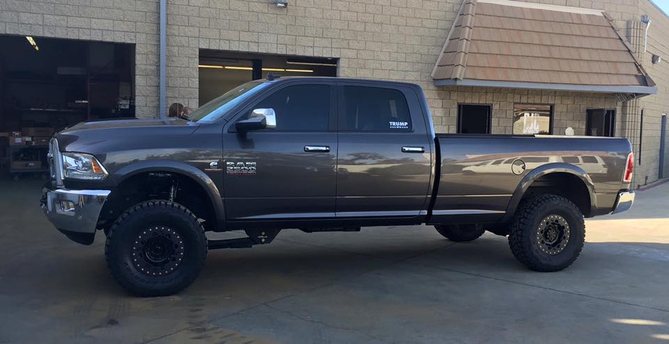 This 2016 Mega Cab 2500 features a Carli Commuter 2.0 system, factory 20's and 35" Nitto Trail Grappler MT tires.