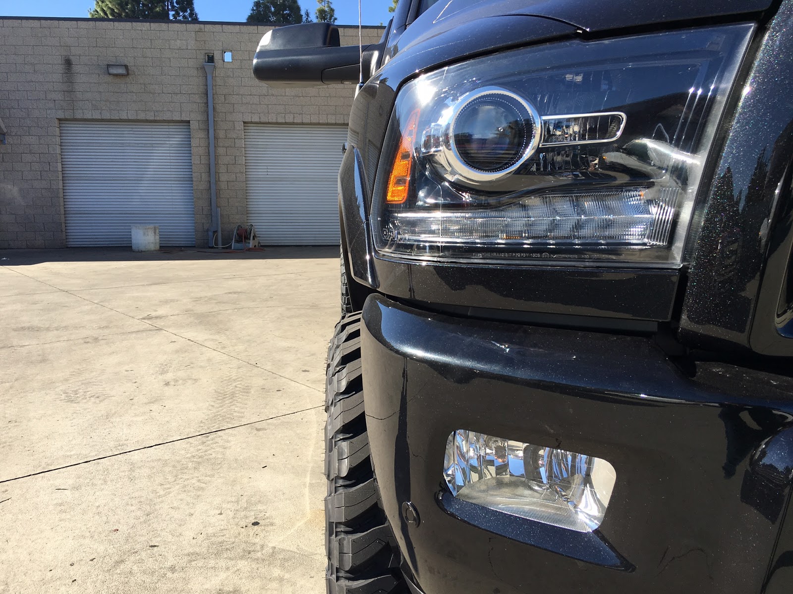 This 5.9 Mega Cab features Glassworks Unlimited fiberglass installed by True Bliss Customs, a Carli Suspension system, Method Race Wheels Mesh 17's, and 37" Toyo MT's.