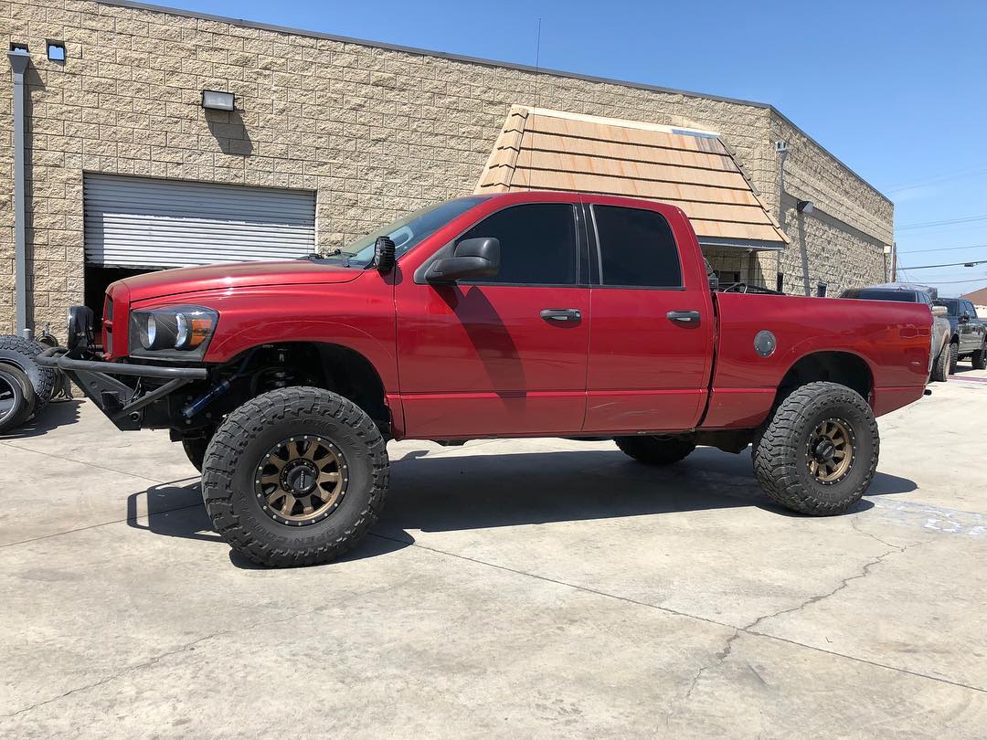 Marshall's 2006 Ram 2500 featuring a Carli 3" Lift Dominator System, Patton Fabrication bumpers, bronze Raceline Clutch wheels, and 37" Toyo MT's.