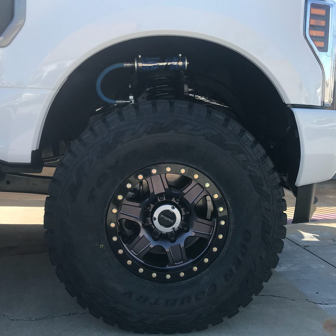 Brent's 2017 Ford F250 looks great on a Carli 4.5" Commuter System, Innov8 beadlock wheels, and 37" Toyo open Country MT tires.