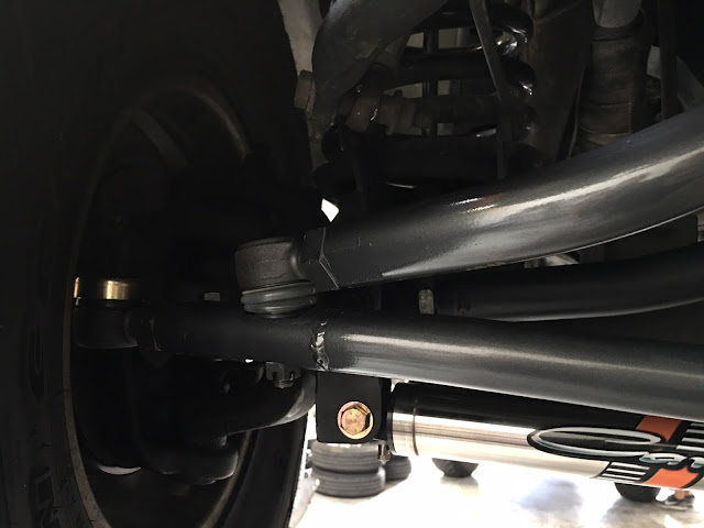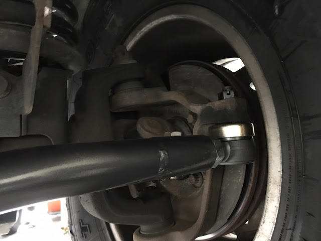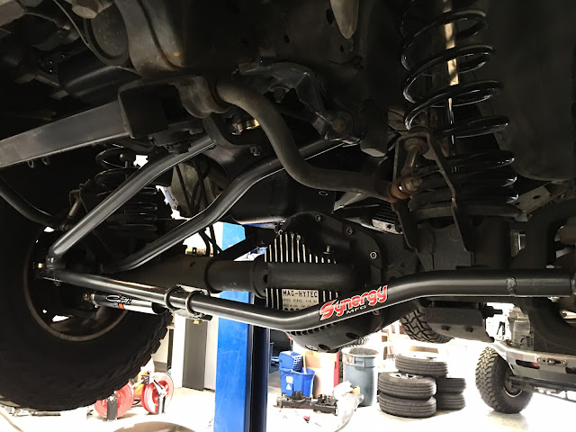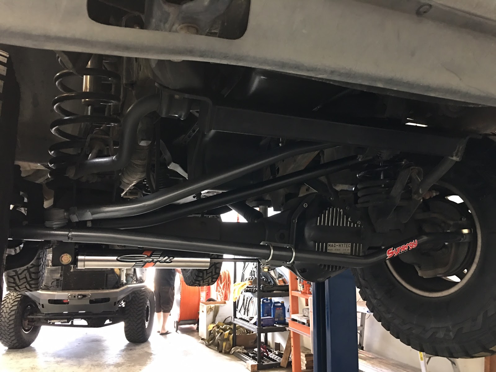 In the picture above you can see the bend Synergy has provided in the tie rod to clear the pitman arm at full bump. This steering setup did not rub the Mag Hytec diff cover on the test truck.
