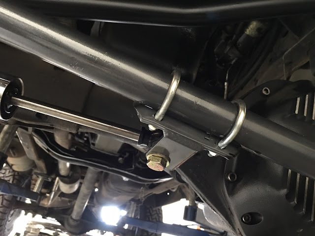 The axle side stabilizer bracket above. With this steering setup, 2008.5+ stabilizers can be used, such as the Carli stainless low mount shown above.
