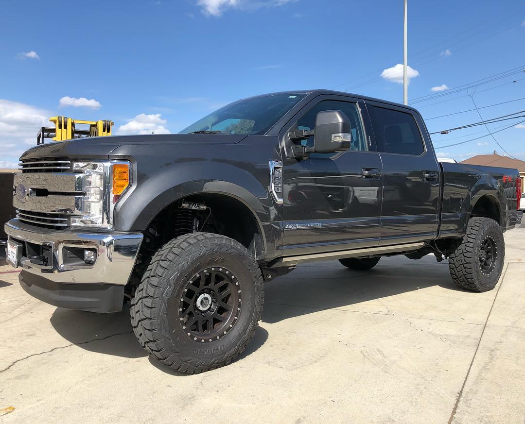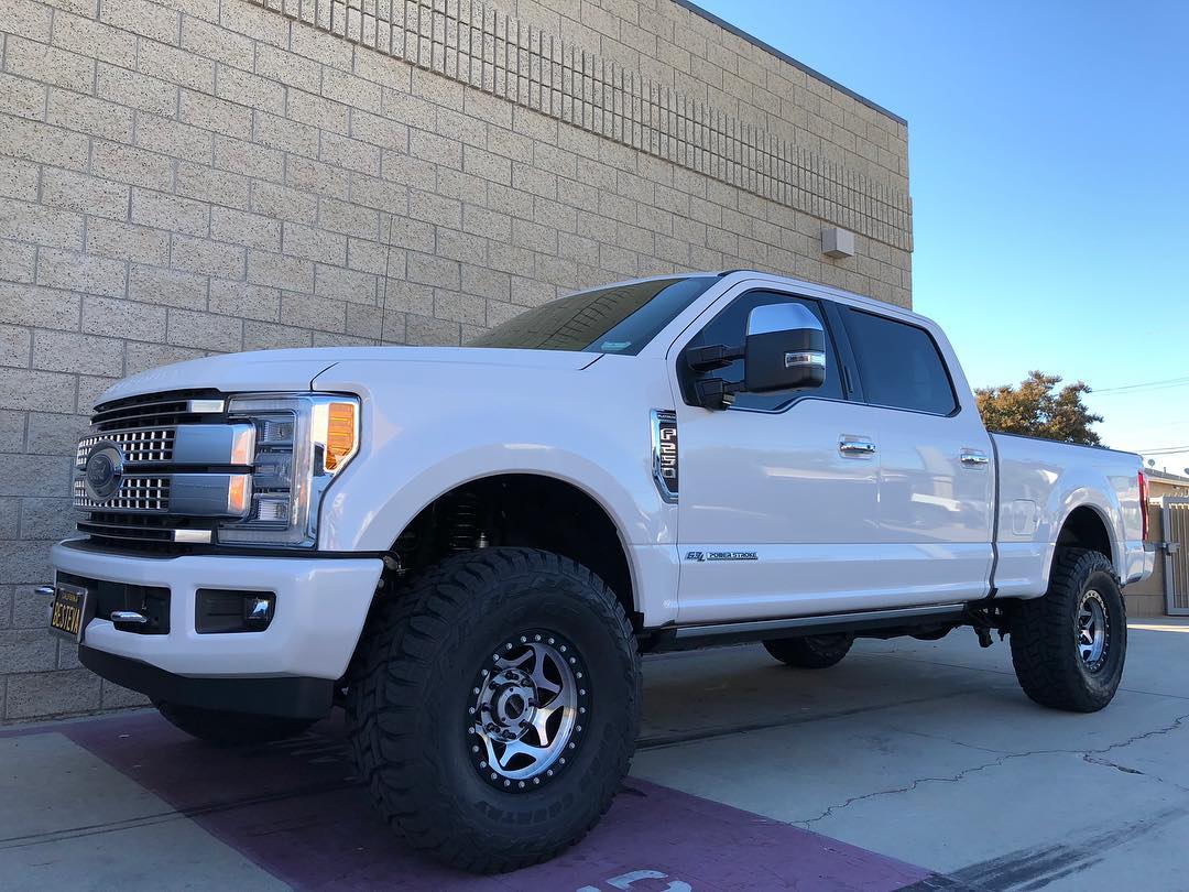 This Super Duty got some of the best upgrades available - Carli 4.5" Dominator System with Carli Fabricated Radius Arms & Carli Full Progressive Leaf Springs, Method's new Trail Series 17" wheels, & 37" Toyo Open Country MT's.