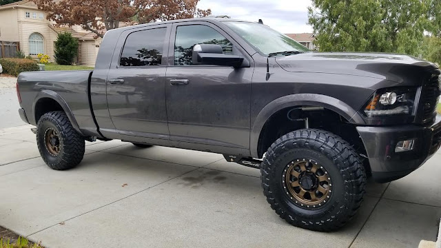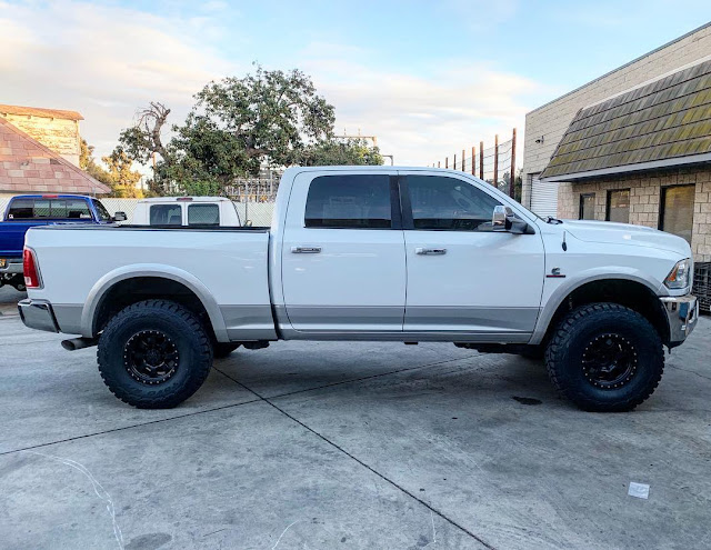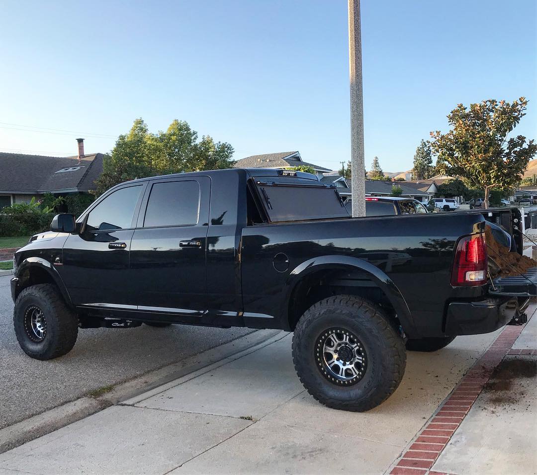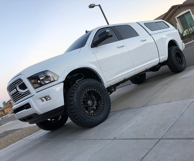 Our friend Russell's Ram 3500 featuring a Carli Pintop 3" Lift with Fabricated Radius Arms & Full Progressive Leaf Springs, 17" Raceline Monster Beadlocks, & 37" Toyo R/T's.
