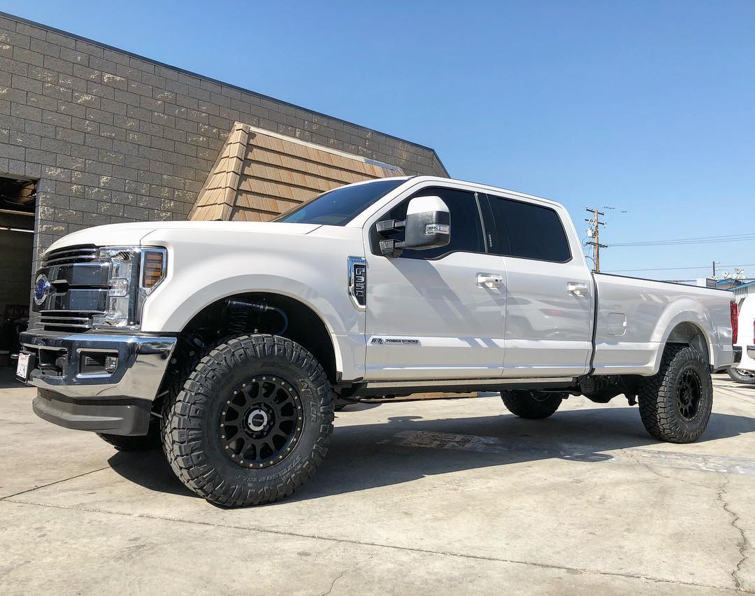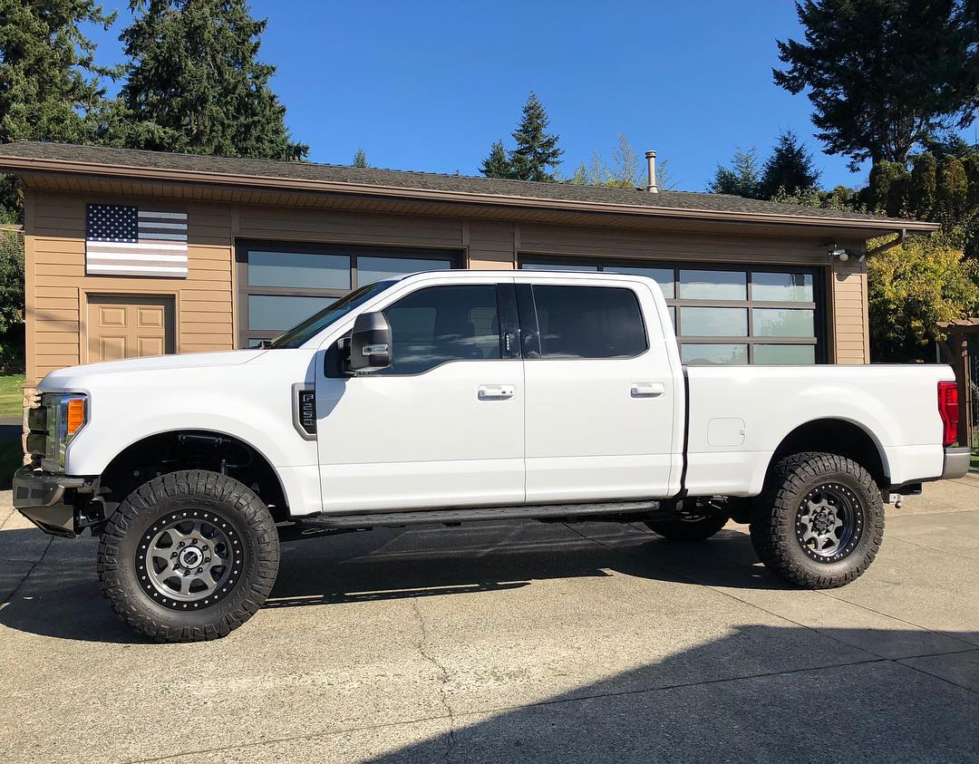 This new Ford F350 is riding considerably better than stock thanks for a Carli Pintop 2.5 Leveling System with rear progressive add a packs, 18" Method NV's, & 37" Nitto Ridge Grapplers.