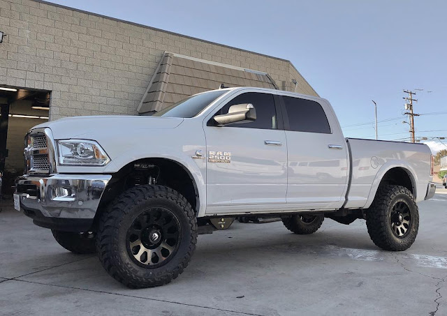 This Mega Cab came down from Northern California. It received a Carli Back Country 2500 3" Lift, 20" Method 605 NV wheels, & 35" Toyo Open Country R/T tires.