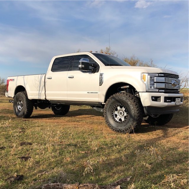 Brandon's new Platinum Super Duty is running a Carli 4.5" Pintop Lift, 17" Innov8 Racing Simulated Beadlocks, & 40" Toyo Open Country MT's.