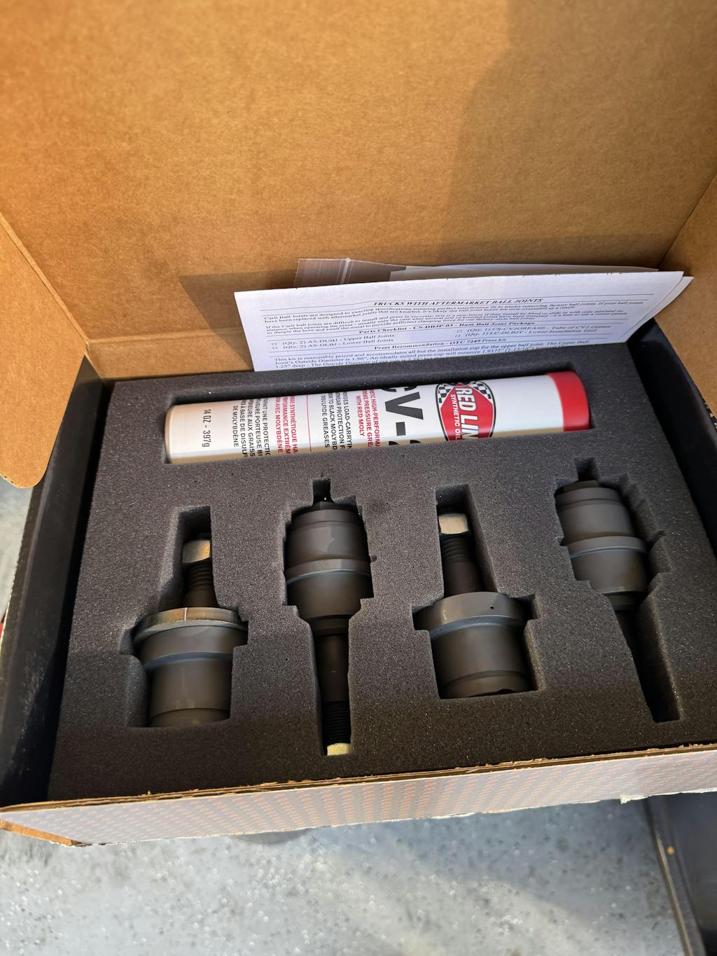 Carli's ball joints start out as a chunk of specialty chosen material which is machined to Carli's unique design and then heat treated to a specified rockwell (hardness). From there the ball joints head to an aero-space lube company where a proprietary dry-lube coating is applied to their specified thickness. Carli tops them off with an accessible zerk fitting for easy servicing, plus they even include a tube of high quality synthetic grease with each ball joint set.