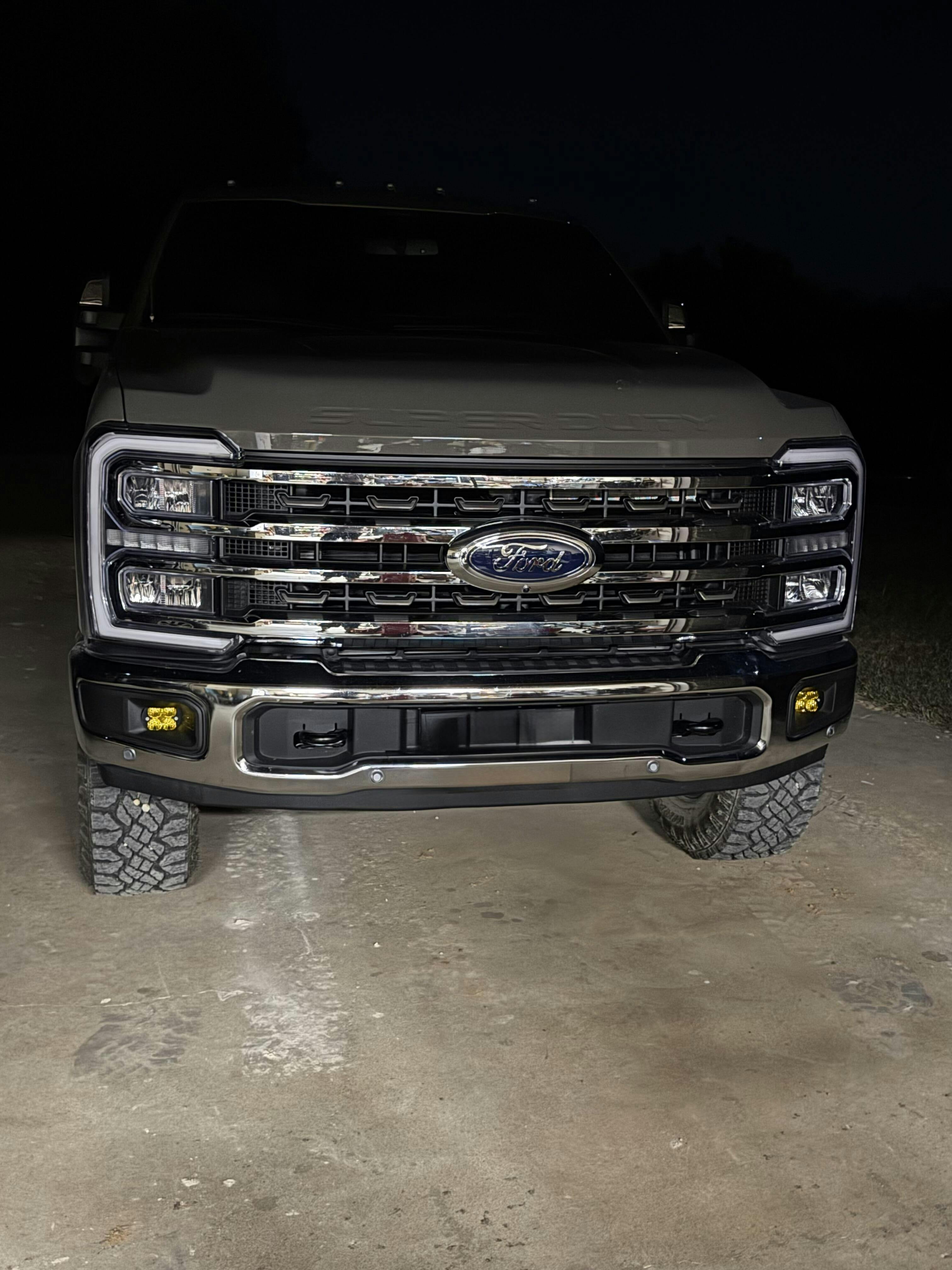 This fog light kit allows you to mount a Baja Designs Squadron SAE, Sport or Pro light in the factory fog light location on your 2023, 2024 and current Ford Super Duty F-250, F-350 and F-450 truck. This kit is plug and play into the truck's factory fog light wiring/switch, and incudes everything you need to upgrade your Ford Super Duty lights in a matter of minutes!