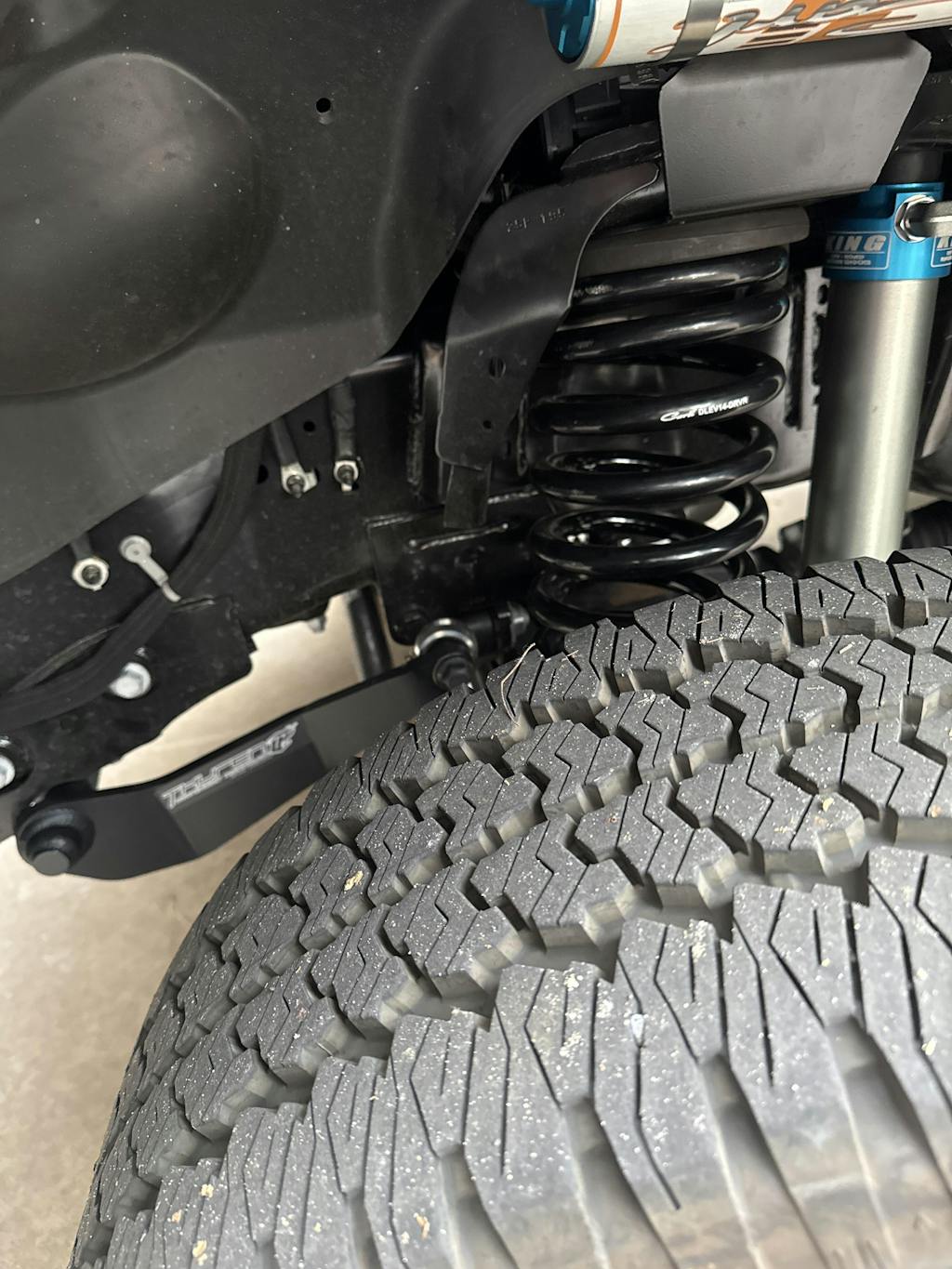 - Clears most 37x12.5 tires on stock wheels, with no rub on the sway bar.