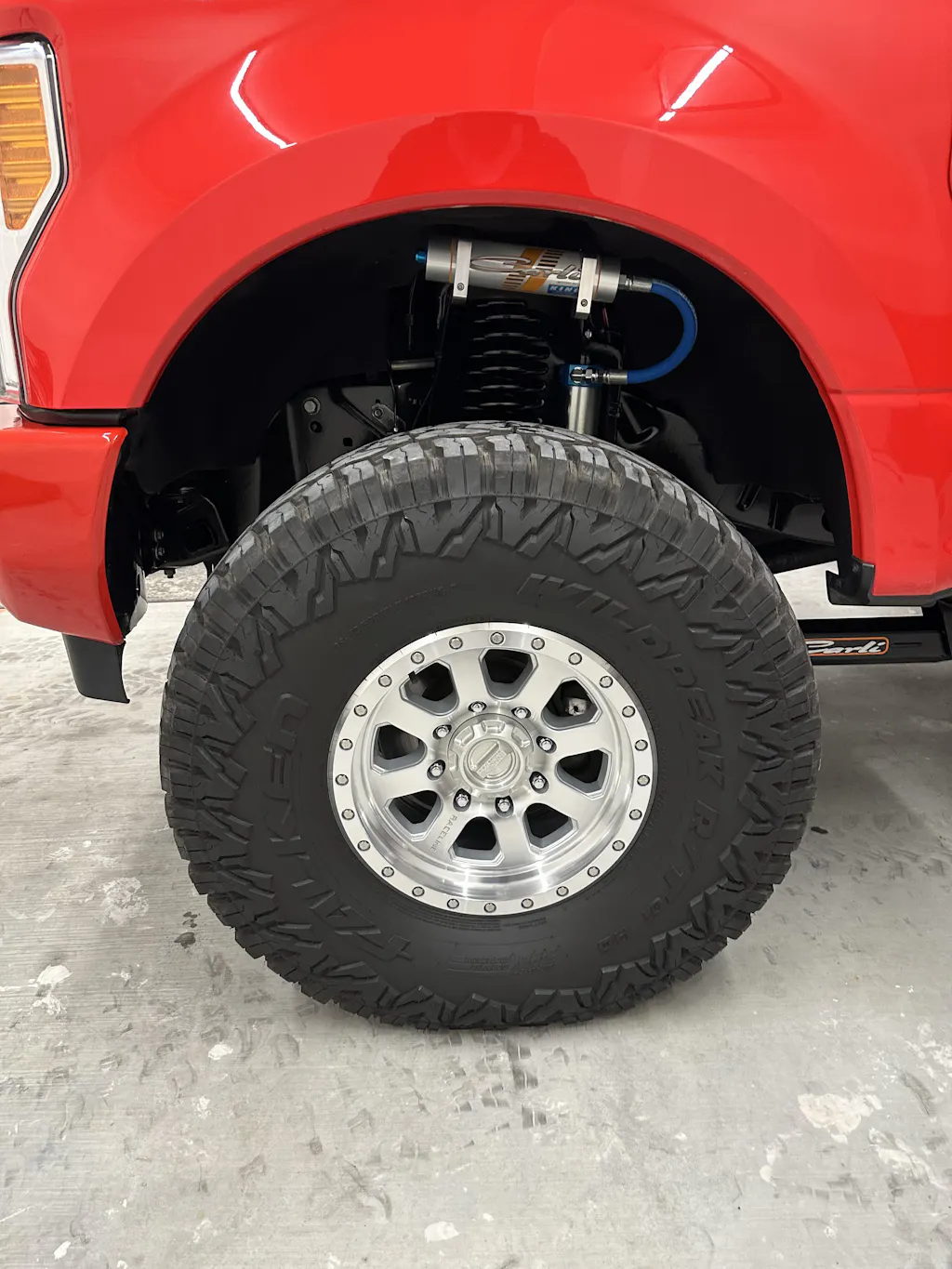 100% USA made billet aluminum center cap kit specifically made for 2005+ Ford SuperDuty trucks with locking front hubs. This kit includes our open front center caps, billet locker knobs, and 3.6" tall 8 lug rear center caps. Available in raw machined, anodized, and powder coat finishes. Allow 2-4 weeks for anodized or powder coated caps.