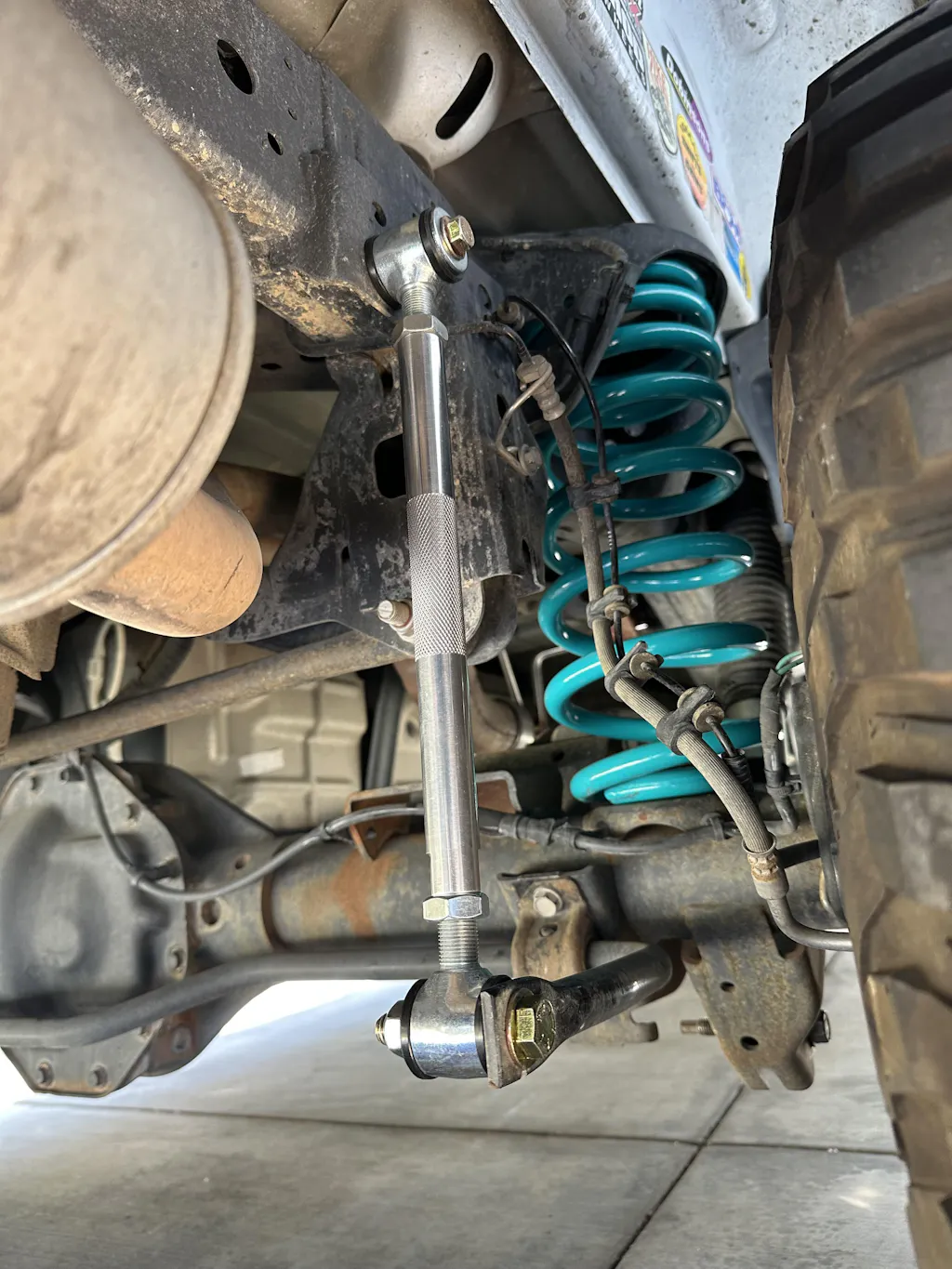 The sway bar side of the link kit secures with our supplied hardware.