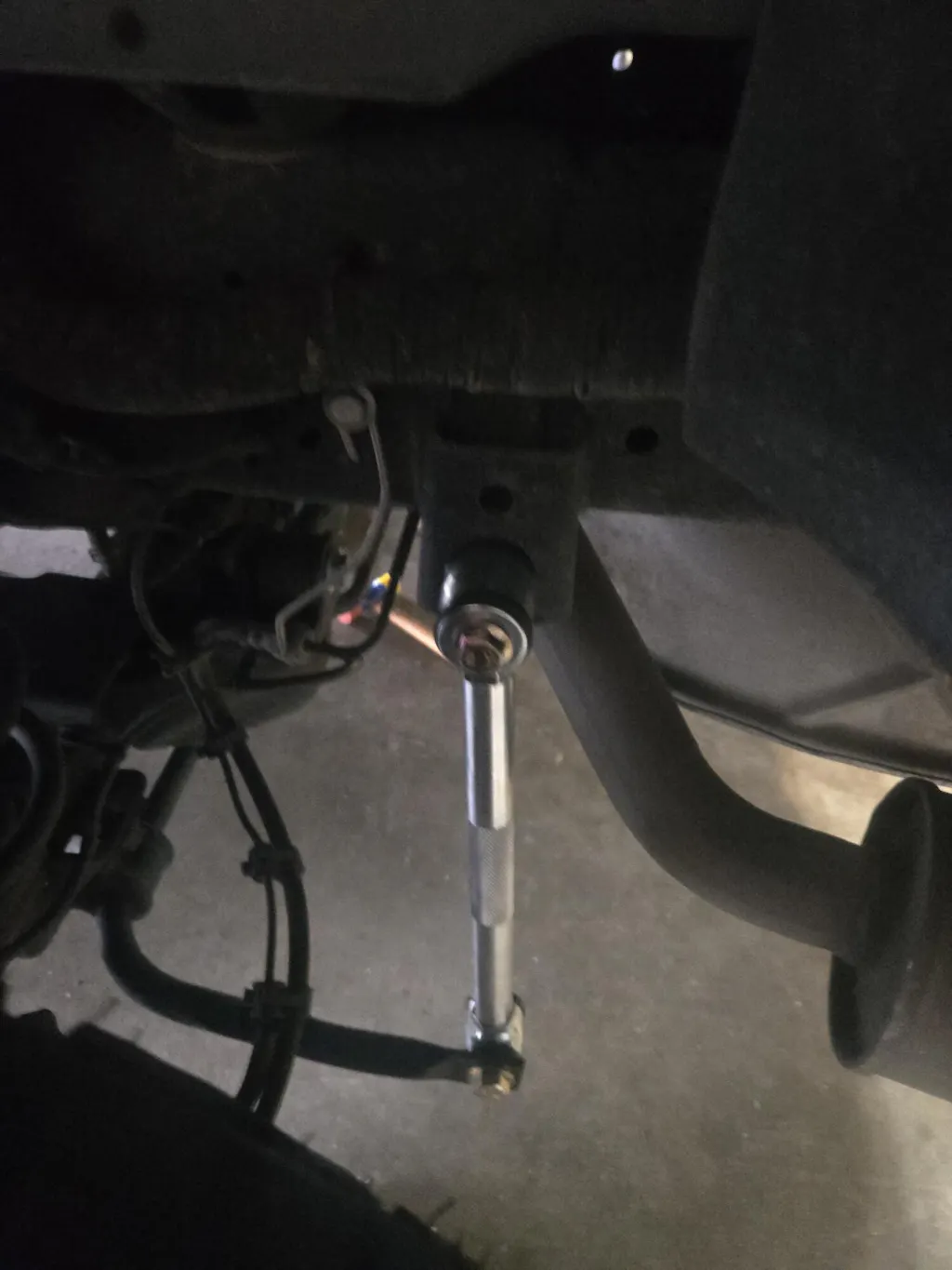 The Frame end, we provide a bolt and fender washer to secure the link to the threaded insert in the frame rail.